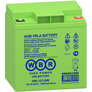 WBR серии HRL12110W - герметизированные, необслуживаемые, VRLA аккумуляторы, изготовленные по технологии AGM, со сроком службы более 12 лет применяются для эксплуатации на коротких режимах разряда в системах бесперебойного питания ЦОД и другом технологическом оборудовании. Допускают до 300 циклов глубокого разряда.