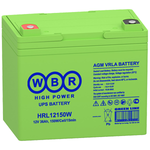 WBR серии HRL12150W – батареи с высокой энергоотдачей, необслуживаемые, герметизированные, выполнены по AGM - технологии, способны работать в циклическом режиме, в любом положении, безопасны в эксплуатации, имеют низкий уровень саморазряда, высоконадежны. Срок службы в буферном режиме – до 12 лет.