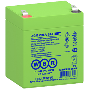 WBR серии HRL1223W F2 - герметизированные, необслуживаемые, VRLA аккумуляторы, изготовленные по технологии AGM, со сроком службы более 12 лет применяются для эксплуатации на коротких режимах разряда в системах бесперебойного питания ЦОД и другом технологическом оборудовании. Допускают до 300 циклов глубокого разряда.