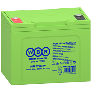 WBR серии HRL12280W – батареи с высокой энергоотдачей, необслуживаемые, герметизированные, выполнены по AGM - технологии, способны работать в циклическом режиме, в любом положении, безопасны в эксплуатации, имеют низкий уровень саморазряда, высоконадежны. Срок службы в буферном режиме – до 12 лет.