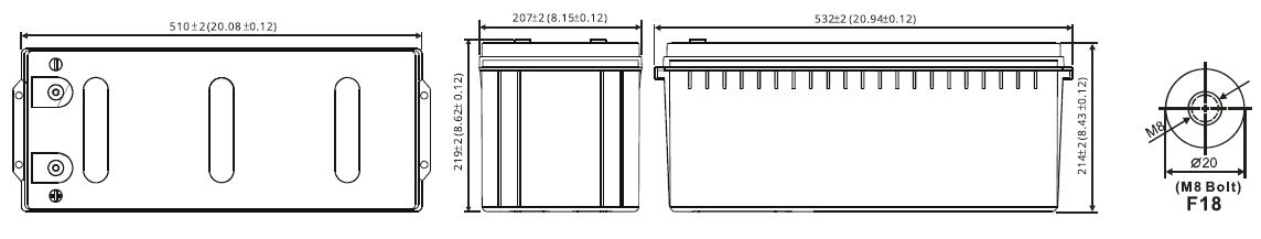 200.0 Ач при 20-час. разряде до Uкон. - 1.75 В/Эл при 25 ˚С